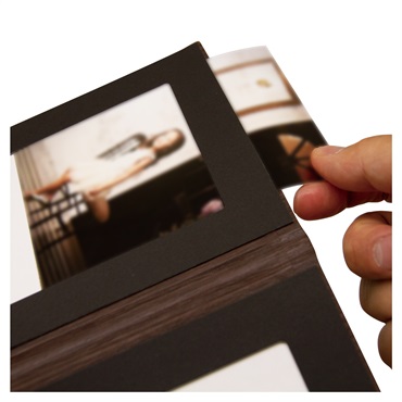 写真をスライドさせて収納する接着剤不要のスリップイン台紙です。